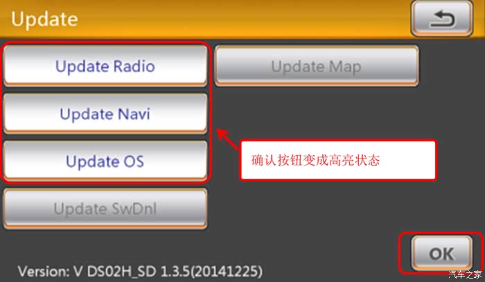 3.不带导航版本升级时请确认发动机已经点火并处于正在正常工作状态 带导航版本升级请首先确保电池电力充足 并不要启动发动机