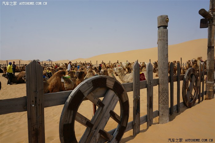 整个沙漠浩瀚无垠,开发出来供人游玩的也只是边角很小的一块,响沙湾景区主要游玩项目分布在仙沙岛和悦沙岛2个岛上就是两个距离不太近的大沙包上,穿行之间可以做冲浪车,骑骆驼,小火车等收费项目交通工具,当然有很多装备齐全的旅游徒步征服沙漠,佩服之至,我是老了木体力了只能做汽车了,遇到他们不禁挑大拇哥大声赞叹!