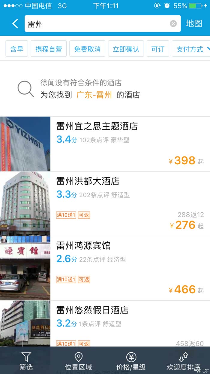 定宾馆,可能是定晚了,雷州作为一个县级市,初3晚上的房价不便宜。