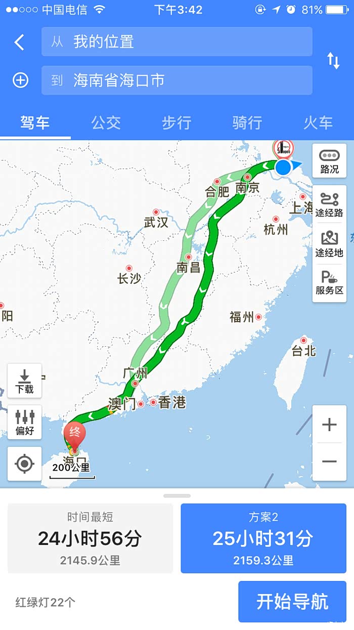 2100多公里才到海口,人生中的第一次最远长途,还好以前已经开过广州