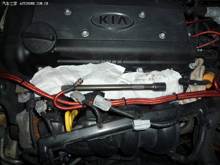 拆下原车的喷嘴···注意要遮盖好安装喷嘴的孔位,避免过多的灰尘进入。