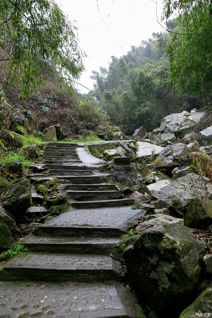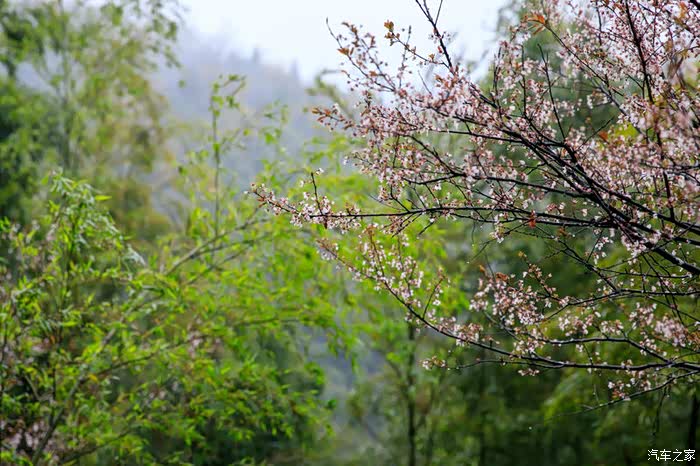 今天由于下雨的原因,景区内没有什么游客,整个山谷中比较幽静,栈道两边都是高大的竹子!还有一些零星的野樱花,一阵风吹过,夹杂着雨水下起了樱花雨!