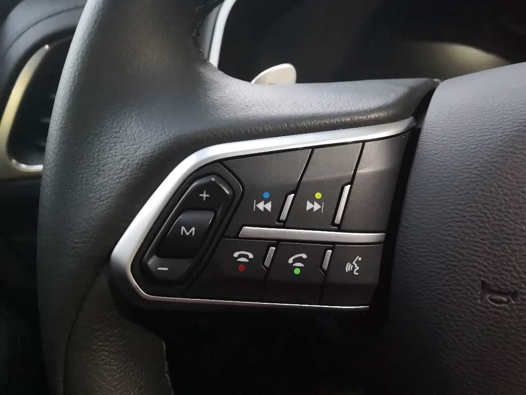 音量加和音量减中间的M键就是暂停键了,上面一排是左右切换,下面的当然就是电话了,最后一个是手动激活语音助手,不方便说“你好哈弗”的时候可以按键。另外不得不说的一点就是它有个音量随速功能,简直就是速度与激情啊。