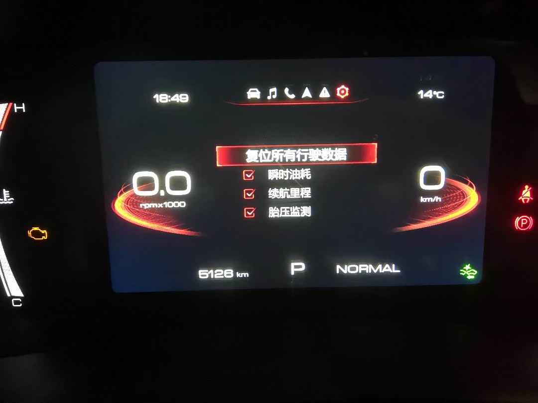 在这里可以重置油耗里程胎压什么的。