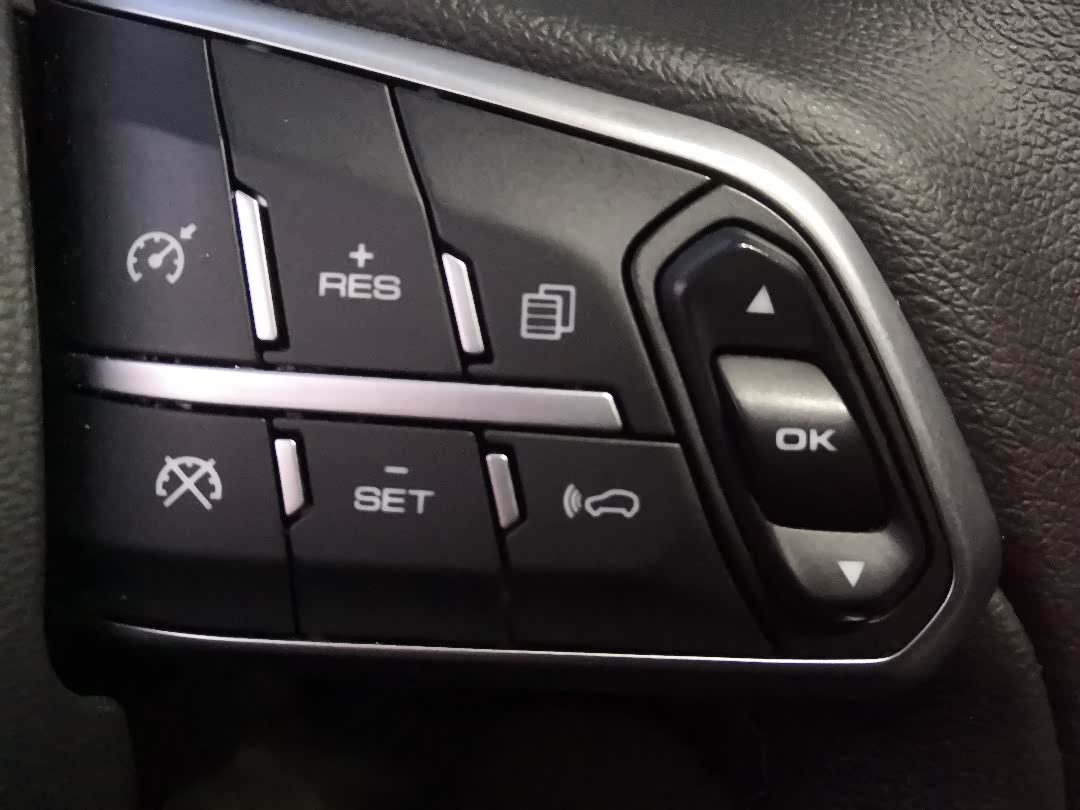 这几个按键就复杂了,第一排一个就是定速巡航了,第二个和下边那个是设置速度的,而第一排第三个就是仪表盘的设置了