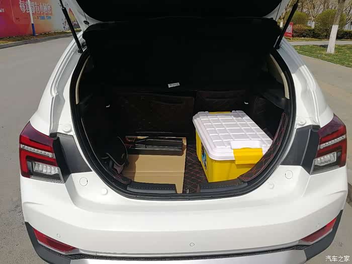 拿掉隔板,则可以放两层了,空间一下子就增大了很多,但是对于家庭用户来说,我觉得可能并不会需要放那么多东西,而且如果放的特别满,会对后面的视线有遮挡,会影响行车安全,所以,这里并不建议真的去把它填满。