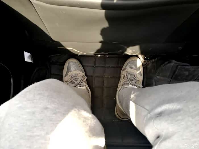 先说一下驾驶位的空间。由于是我一个人,所以没法拍照展示了,就只能来说了。我开车的时候是喜欢坐姿高一点儿,这样视野能更好一些。座椅向上调整到适合的位置(这个坐姿没办法统一),向后调整到一个腿部空间足够的位置上,大概是离前面的操作台一拳多一些,我不喜欢离的太远。头部空间,由于这个位置刚好是在天窗下面,是向上凹一些的,所以是有一拳的距离,这个设计还是比较好的,如果这里没有天窗而是平的,估计座椅就要放低一些了。