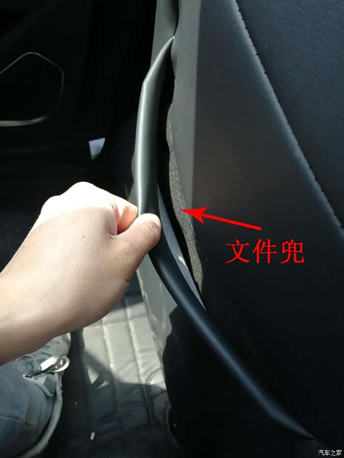 前排座椅后面有个兜,可以用来放一些书啊、平板电脑之类的东西,但说实话,从来没用过,还害怕总往里放东西会撑坏了,实用性不大。