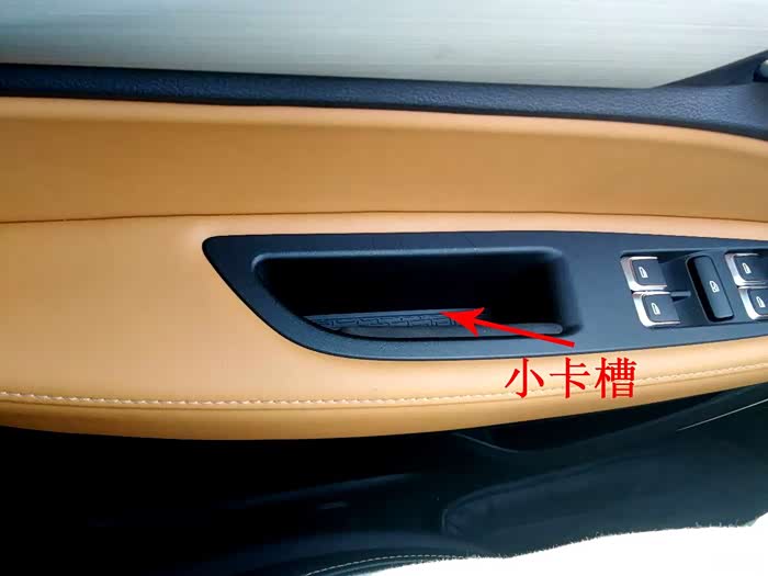 车门里面的这个小拉手槽里我一般就是过高速的时候放卡,还真没放过别的东西,当然,放钥匙也可以,但是大的东西是放不下的。