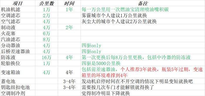 绿色就是从汉兰达2.0T手册里查到的,备注里黑色字就是我个人的经验和建议了。