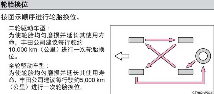 保养手册说两驱1万公里轮胎换位,四驱5000公里轮胎换位,但是我个人感觉城市路况好,轮胎磨损慢,2万公里换就行。5轮换位,4s店才收40元,价位合理。