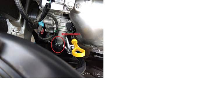 2015款的赛欧3已经6年了,用ph测试笔测了一下防冻液ph值,7.28说明碱值贮备已接近耗尽。手册说5年或25万公里先到为准,看来虽然才跑了不到6万但是时间到了也该换了。在拼夕夕上买的原车同款防冻液4升80元。测了一下新的防冻液ph值8.8。因为过去别人换都是把车热到电子扇启动然后拔图中红圈内的管子,考虑到热水烫伤的风险决定凉车更换。用套筒棘轮扳手拧开绿色箭头指示的两颗螺丝拿下铝制弯管防冻液就流出来了,记得打开压力水壶盖子因为是凉车没啥危险。铝制弯头内是节温器取出放出水箱里的防冻液。六年的防冻液跑了不到6万公里和新的对比颜色变深了,由粉红变成了深红粘度也变大了。因为原防冻液没有变质拧紧螺丝后未做清洗直接加入新防冻液,如此方法只能放出4升所以买一桶就可以了。防冻液一旦ph值接近7就要更换否则会腐蚀水箱,水泵,还有发动机水堵造成重大损失。车要养为主不要等出问题才去修,汽车养护用品鱼龙混杂尽量在官方渠道购买。