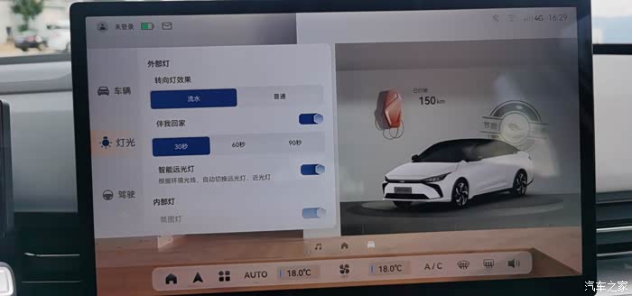 车辆基础设置界面,屏幕反光不是很清楚。见谅我们可以设计后视镜、座椅、抬头显示等功能。
