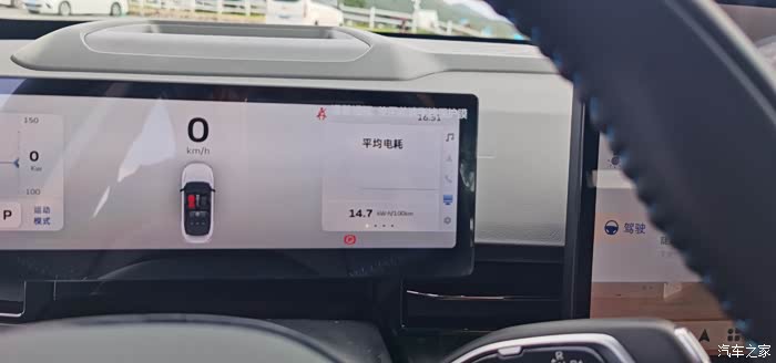 1设计理念人性化:车机屏是分屏显示的。对于我们驾驶员的行车注意的焦点是什么?导航信息、续航历程、电量等车辆的基本状态,它把这些信息集成在了左侧屏幕,副驾驶更侧重于娱乐的需求,听歌看电影等,右侧屏可以显示娱乐信息。互不干扰。将侧重点区分开来。整个系统的布局。