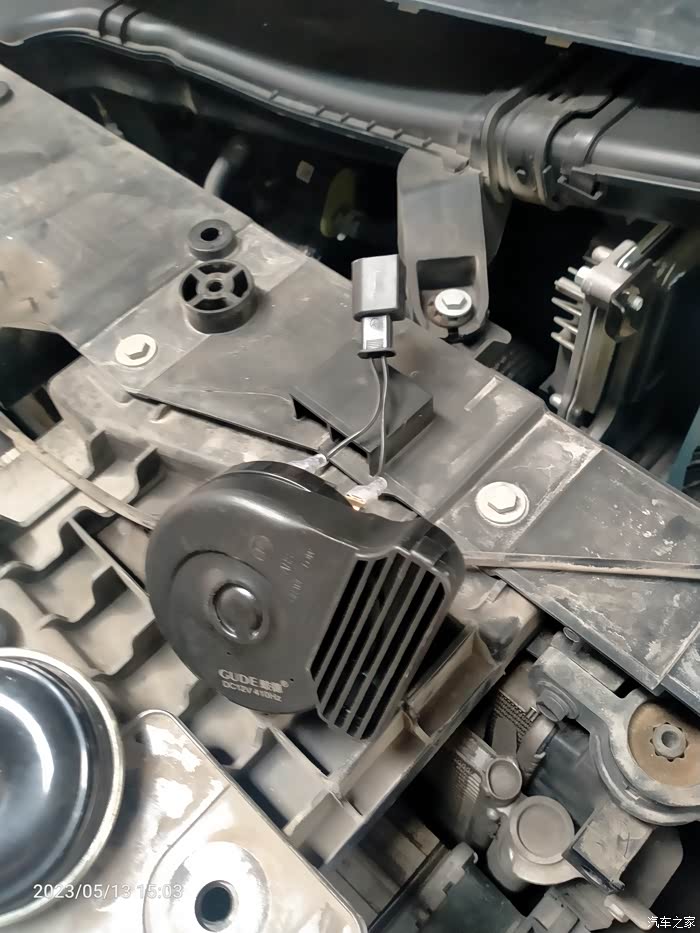 原车喇叭近照,整个过程不用拆原车保险杠,给车友们做个参考,自己一个人1.5小时搞定了,不在听滴滴声了。