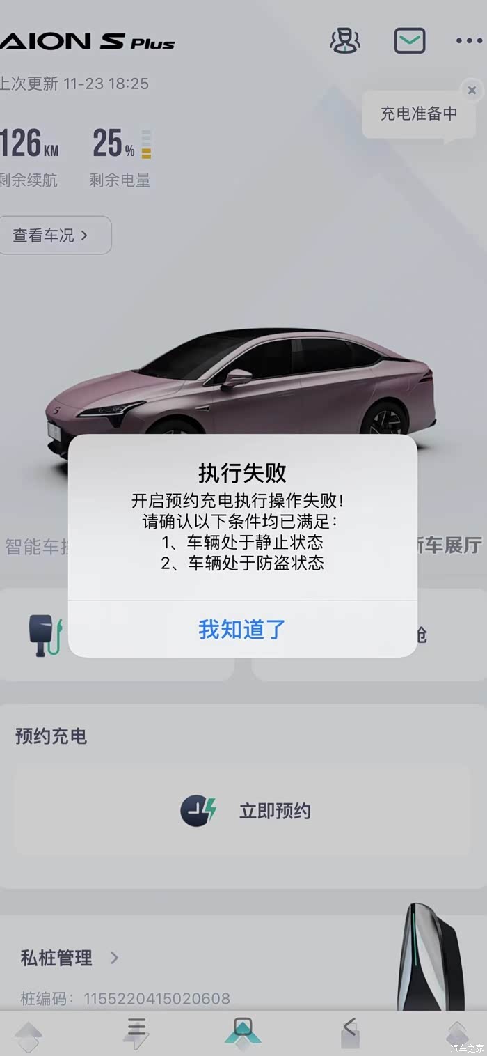 不管是手机app,还是汽车里面设置好充电时间,都无法在自家私桩预约充电,必须在手机点立即充电才能充。(就没有预约充电的功能)去4s店的充电桩又能成功预约充电。你们有这种情况吗?
