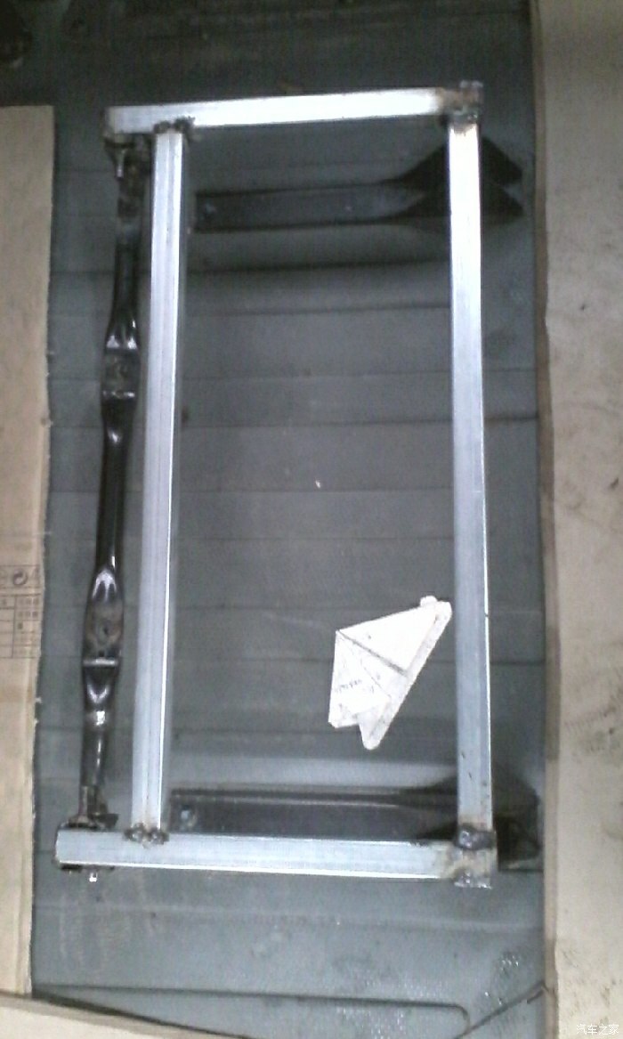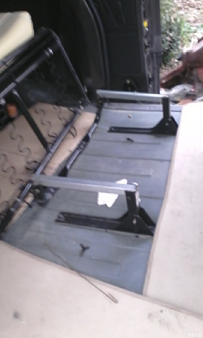 它是可以伸缩的,用的是25--30的方管,套在一起,自制滑道,用来支撑中排放倒床,此滑道是焊接在后排座椅低下的,可拆开,可伸缩,接着看下图