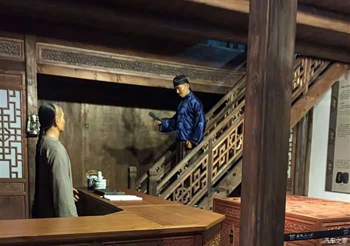 第五展厅主题:学术林立时的先进(清朝)里面有一座实体古民居,雕梁画栋,古民居外就是一条徽州老街,开文墨庄、歙砚博古轩、清风客栈等阁楼,让人有穿越之感。