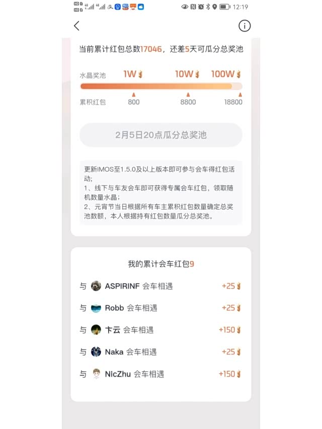最后是智己这次春节期间的活动,路上遇到智己say hi,然后会有一个随机的水晶红包。活动挺好的,但是我在老家一辆智己也没遇到,路上特斯拉、比亚迪、理想都很多,说明智己的销售要加油了。回上海后say hi红包就噼里啪啦得来了,谁叫来到了智己的老家呢。加油智己!