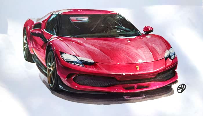 【手绘汽车】混动超跑新贵——法拉利296 GTB