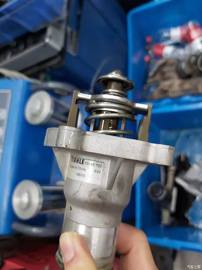 这里有个小技巧,考虑到这款车的节温器是个隐患,所以趁着这次机会,让汽修店同时更换了新的马勒节温器