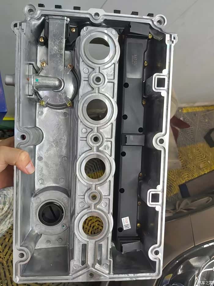 1年半前,到4S解决气门室盖垫渗油问题,当时只换了气门室盖的橡胶垫,最近暴力用车以后,又出现了新的明显“漏点”,只要再次暴力驾驶,就会从这个点里喷出一些机油。看样子得另寻他法,换一个铝合金盖子试试。