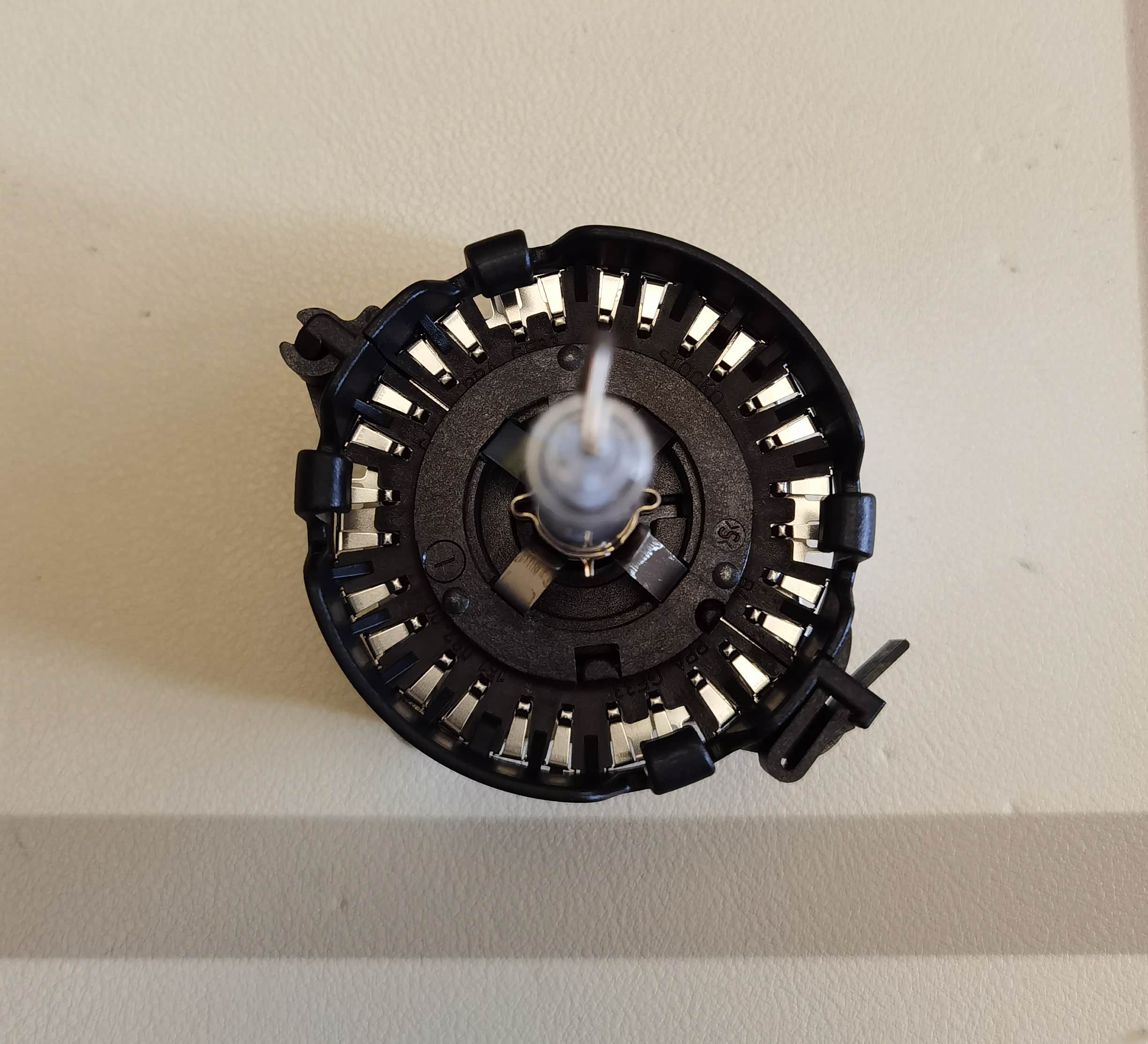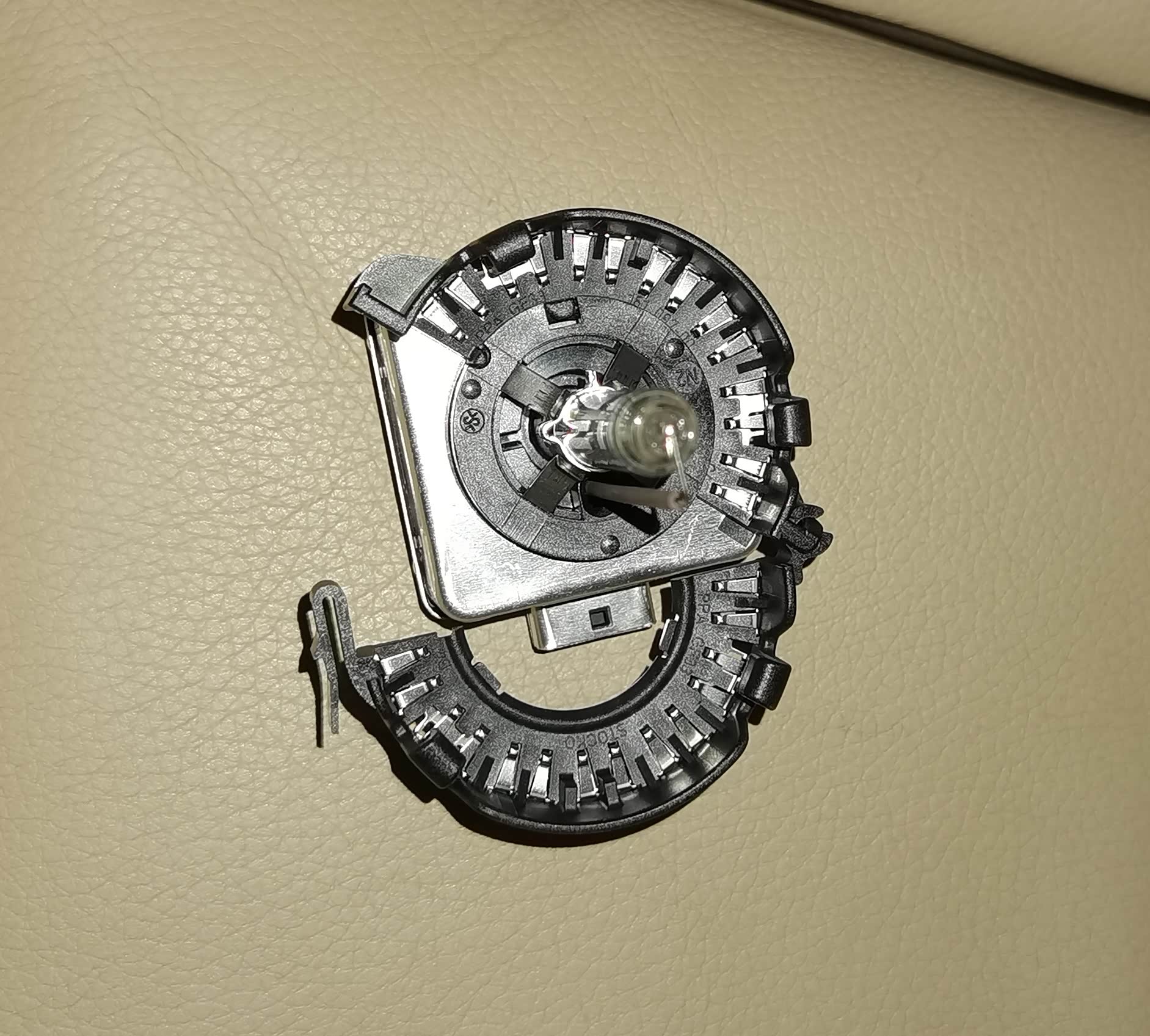 4.逆时针拧灯泡的坐子,取下灯泡,再拔掉连线。灯泡就拿出来了,灯泡型号是D1S。