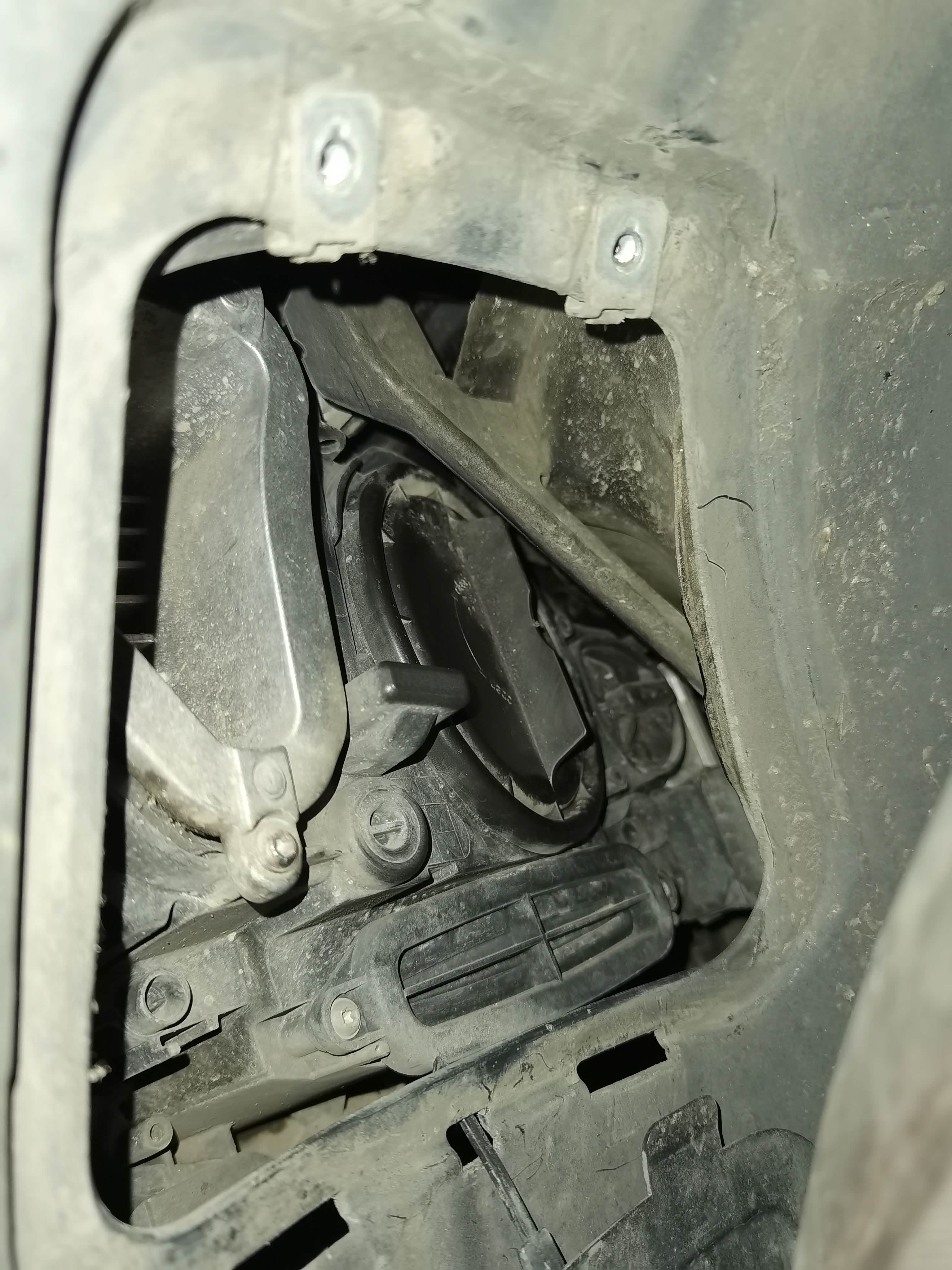 2.关闭大灯,关闭发动机,防止触电。用短螺丝刀拧开两颗螺丝,拆开维修口挡板