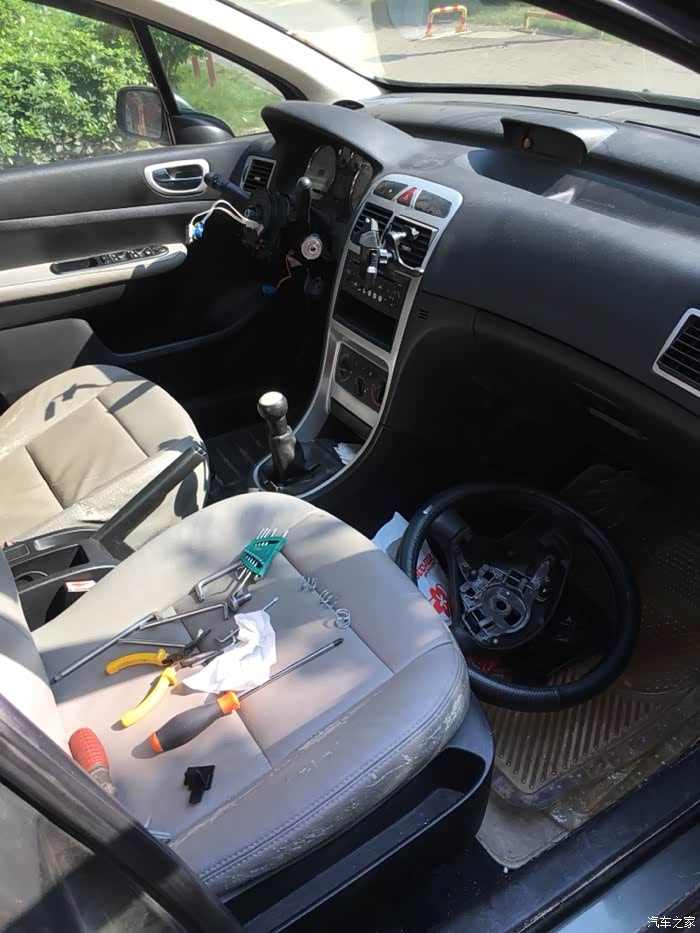 方向盘已经拆下来了。