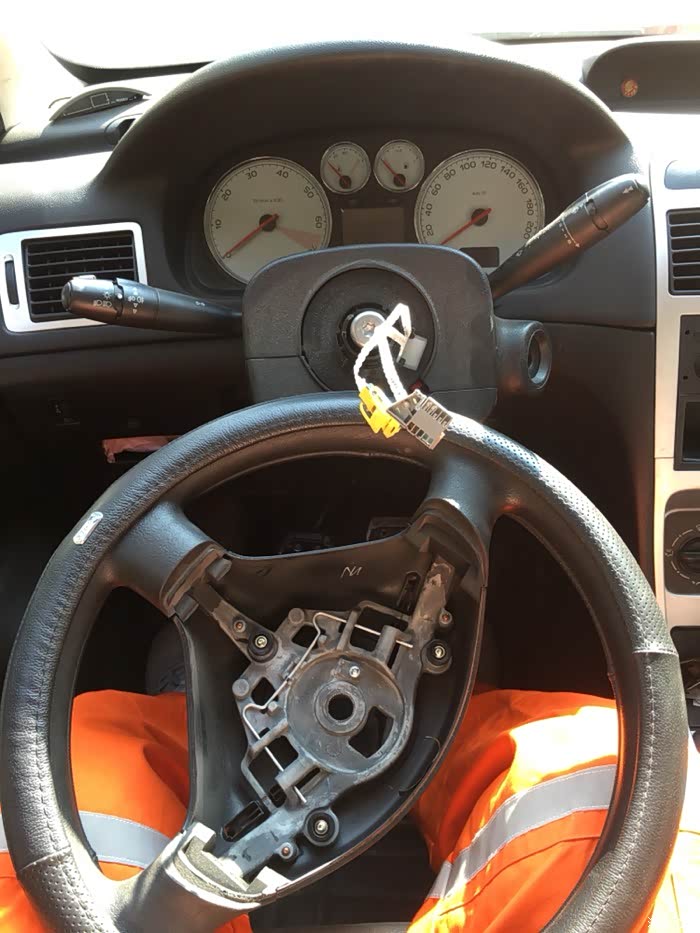 2007款标致307三厢手动2.0,12.5万公里,喇叭不响,气囊灯亮,修车师傅说是游丝断了。网上买游丝,八十块。收到游丝后开工。闲话少说,上图。