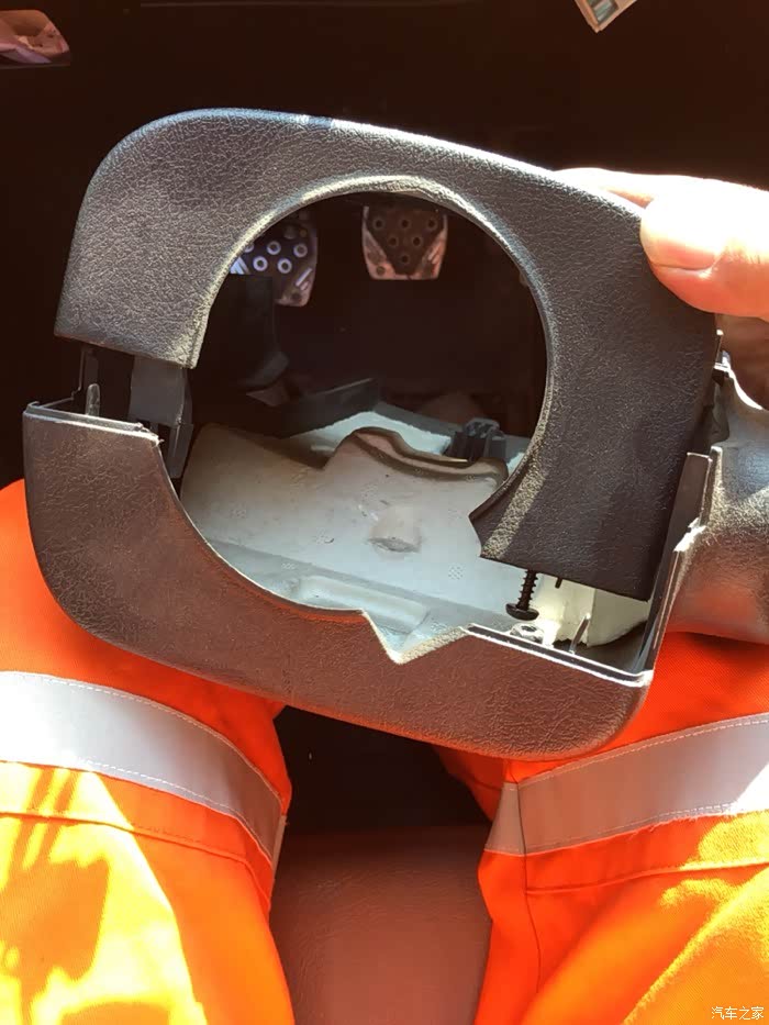 方向盘下面的塑料壳拆下来了