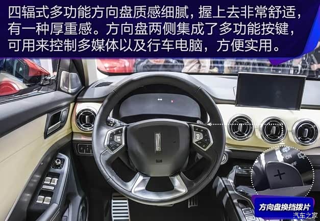WEY VV6采用的四辐式多功能方向盘质感细腻,握上去非常的舒适,有一种厚重感,方向盘两侧集成了多功能按键,可以用来控制多媒体以行车电脑,方向盘带有换挡拨片,整体的样式很时尚,加入了不少的镀铬时间,按钮也加上了金属包边,看着很有质感。