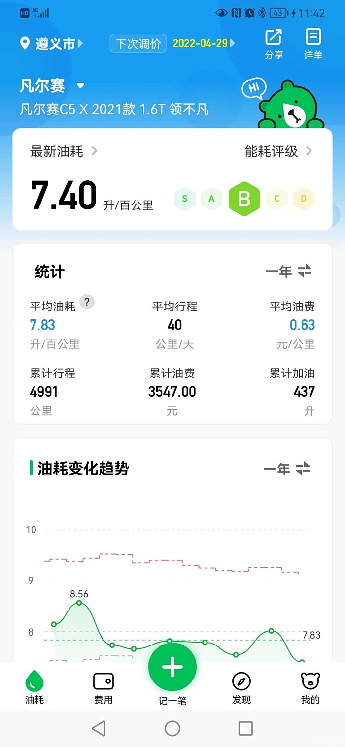 用车半年,总体来说C5X是一台非常不错的家用车,能跑能装油耗还不高,外形还很符合自己的审美,满意度非常高。