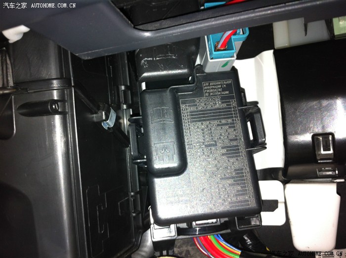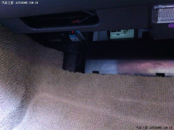 3.把身体躺在副驾位的地毯上,往里面看,看见有保险丝盒,