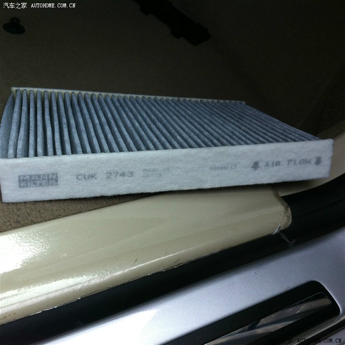 大家发现了没有,空调滤有什么不同?嘻嘻,这是我经过研究的尝试,目的就是为了让保养成本降下来,接近便宜一半,原厂的是CUK2733.经过对比,长宽都没问题,基本一样,差不了多少,唯一问题就是原来的比较单薄,这款就比价厚实,也是原厂的曼牌,安装的时候先上下左右都压压空滤先。