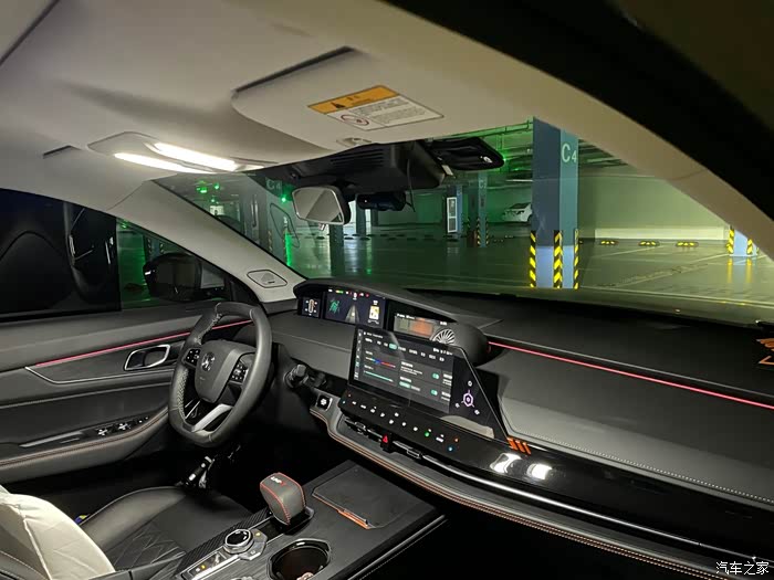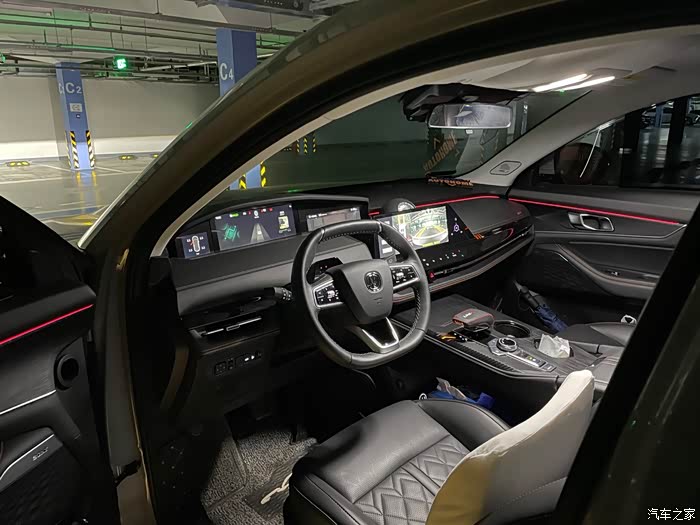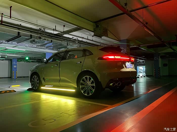 今天开着我的unik,网红车车,中型SUV,长宽高分别是4865.1948.1700轴距2890,长度相对还可以是吧。这个宽度就很宽了,宽敞的车身,想到的就是车内的空间肯定是足够的。看看中控台的宽度,前台很宽松。后排空间做三个成人一点问题没有。而且还是可以翘着二郎腿来乘坐。今天找了一个地库有一半没有开灯,想着拍一组各种灯光的和展示。今天的拍摄地点支付了8块停车费拍出来的哈哈。