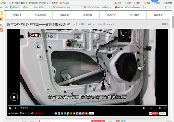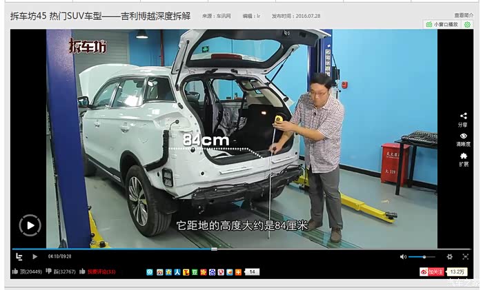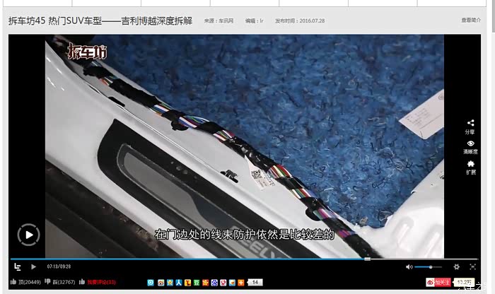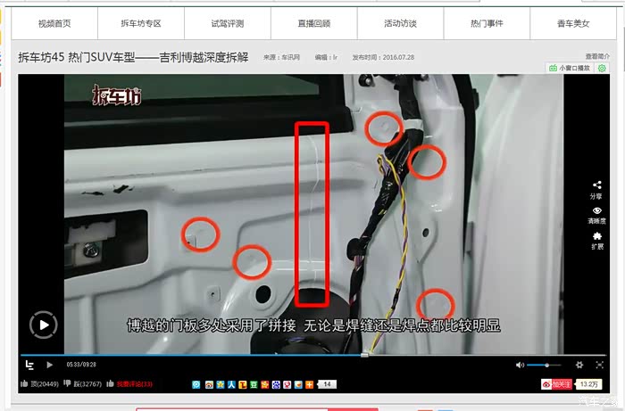 八、唠唠叨叨说这么多,还是建议车友们从拆车坊第一期开始看,你会发现拆车坊已经变味了,原来的可爱郭不见了,戴眼镜拆途观的那位老师也没看见了,后来的视屏完全是机械式的解说,一点营养也没有!对待合资跟国产的态度也不一样!我不是因为拆车坊对博越评价低而对拆车坊进行否定!而是从第一期看到现在的一个观众,对拆车坊的退化痛心疾首……帖子写的不对的地方还需要车友多多指点,临时起意写的,谢谢车友观看……