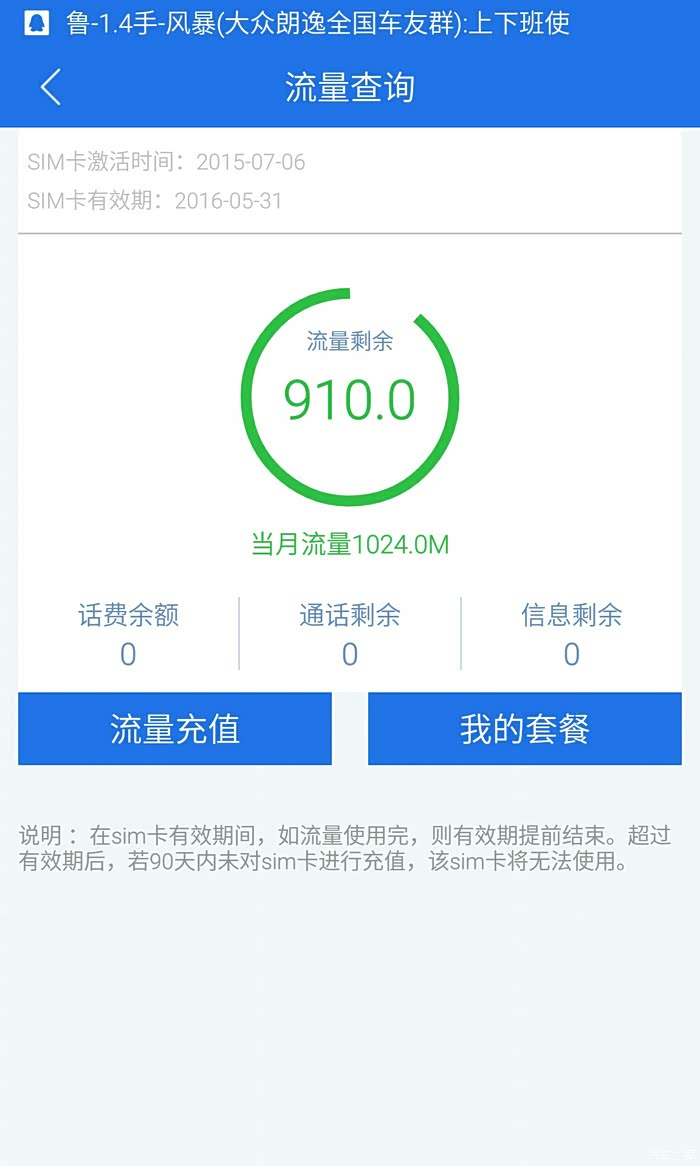 查询嘟嘟车心流量卡的流量信息,一个月1GB,有点太多了,浪费了,其实一个月500MB足够了