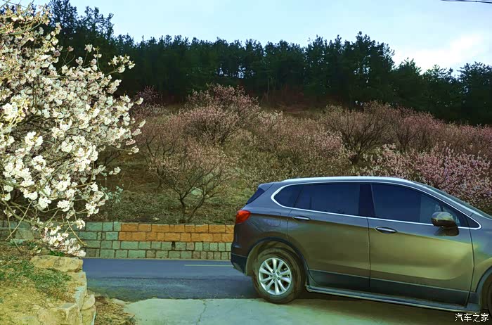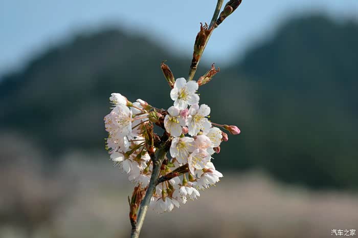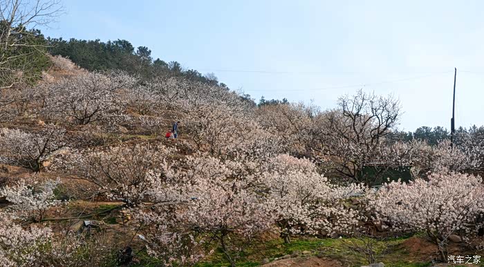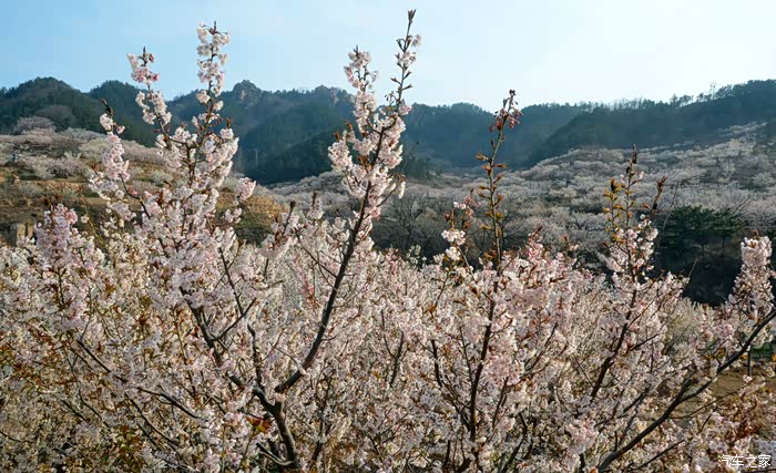 停车场旁边山坡上,大片开放的还是樱桃花。