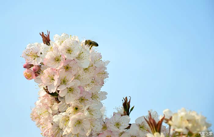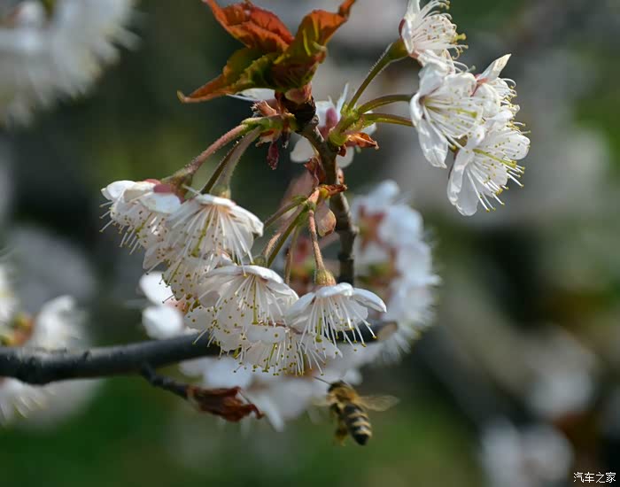 在樱桃林中,可观赏春色满园、可闻阵阵清香,还有蜜蜂在嗡嗡叫,忘记了身在何处。