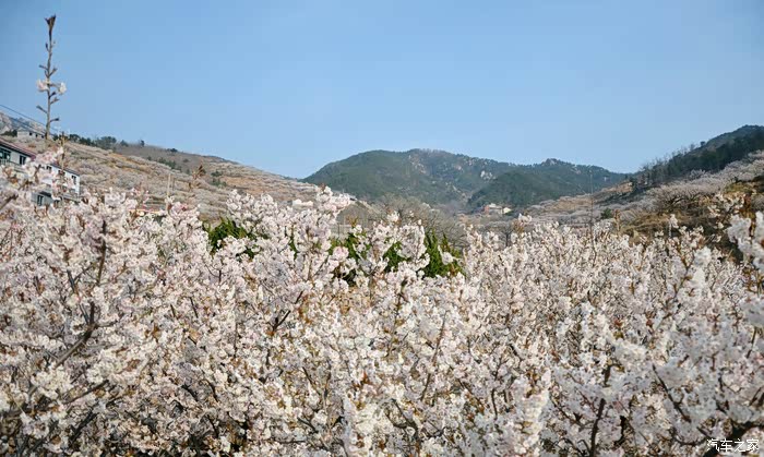 这里的樱桃花一望无际,漫山遍野汇成白色的花海;穿行在其中,犹如在画中行走,淡淡的花香随风拂来,沁人心脾,让人陶醉;远处的小村落则被樱桃花包围,“包裹”着精致的民宅,再加上崂山郁郁葱葱的“背景”,瞬间让人找到了世外桃源的感觉。