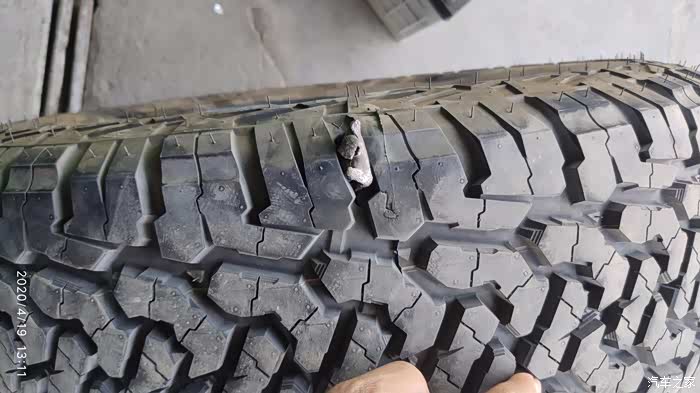 一不小心,扎了这么大一个角铁,才一千公里的新轮胎,心痛啊