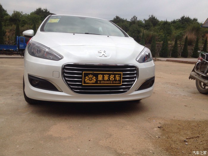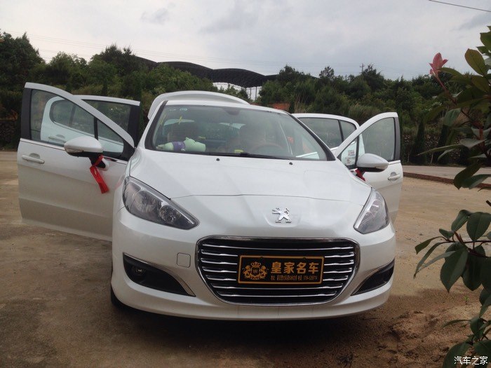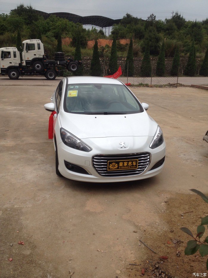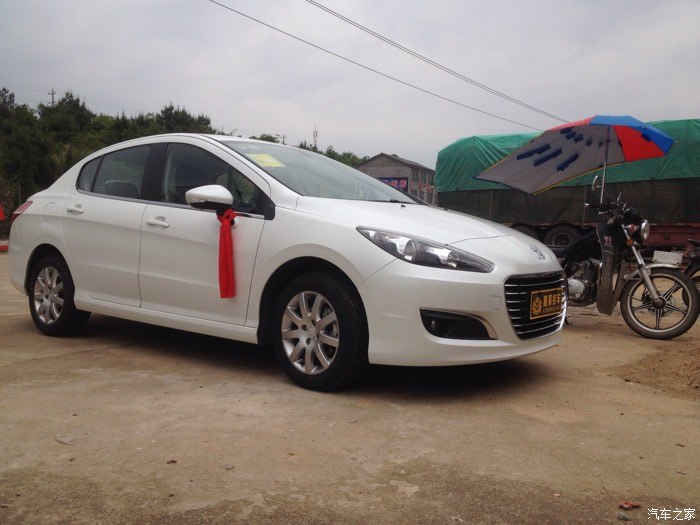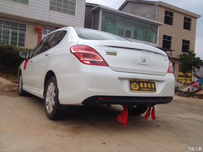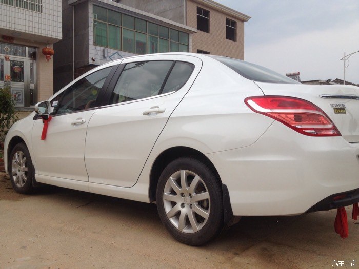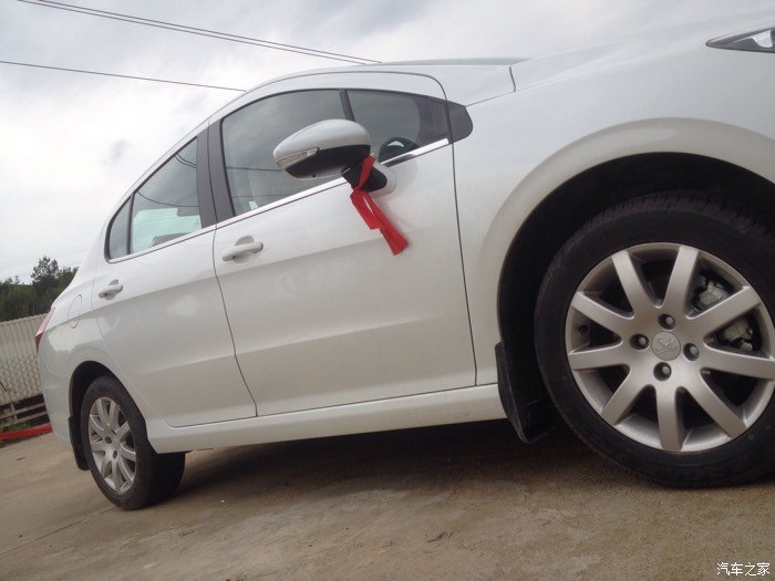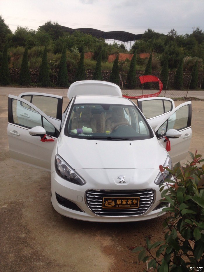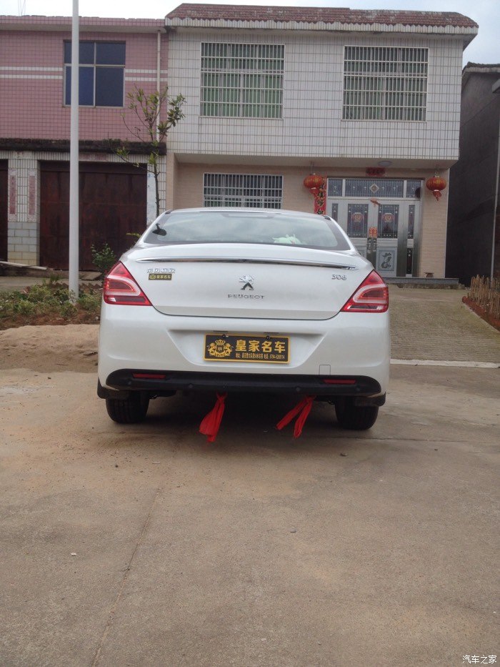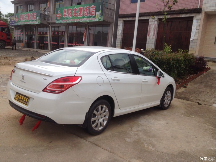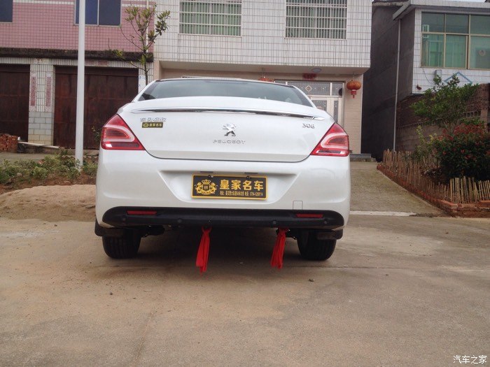 但是这是308出现在我的眼前,比301贵一点,但是车子很大气,配置更高端,优惠幅度大,跟雪铁龙世嘉差不多,都是一样的发动机,就是外形不一样,价格相差好几千,所以果断买308。之后就是去店里订车了,交押金五千,签合同。交了钱之后就是等提车了,哈哈,终于在5.1通知我去提车了,是个好日子,检查新车,带了个老司机去一起检查,看看外观,车架号,发动机号,什么的,没问题,提车回家,店家还给挂了红绳,放鞭炮,不错。车到家,放鞭炮。下面上图。