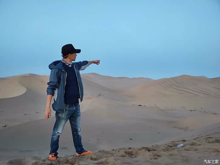 早上6点起床看沙漠日出,爬上沙山顶。有点喘。