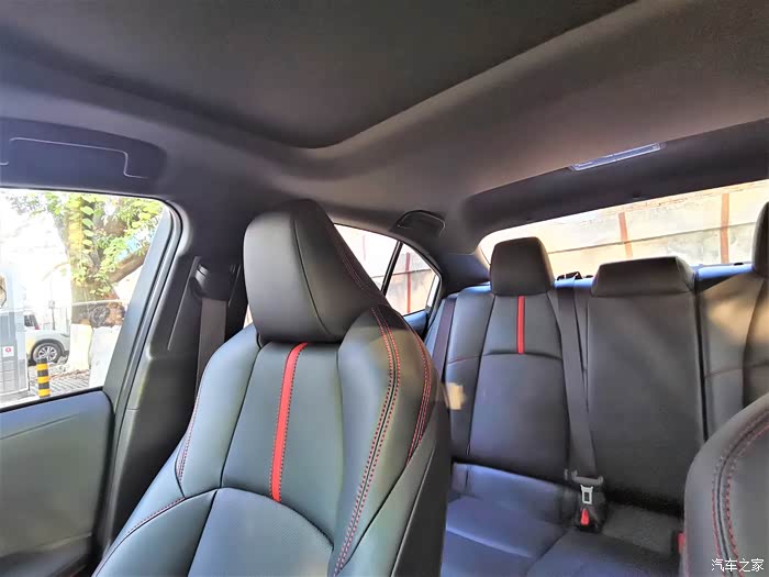全黑的内饰增加了红色线条的点缀,座椅上还有双边的缝高级感马上就提上来了,让车内不在那么单挑,起到了点睛的效果。