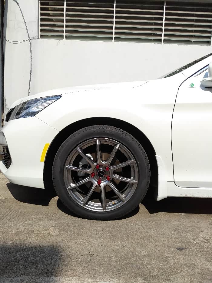 雅阁原车是17的,我提车就换了18的,主要是考虑轮胎的尺寸选择多,还不算娇气,但是看久了感觉效果不明显,于是就又一冲动换了套19的,18那套轮胎才开了不到八千公里的倍耐力P7,弯路走大了