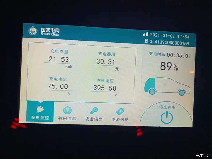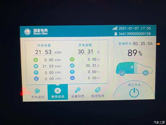 最后结算,充了21kW的电量,合计30元,虽然国家电网的费用不低,但比起油车还是起码省一半以上,不错不错。
