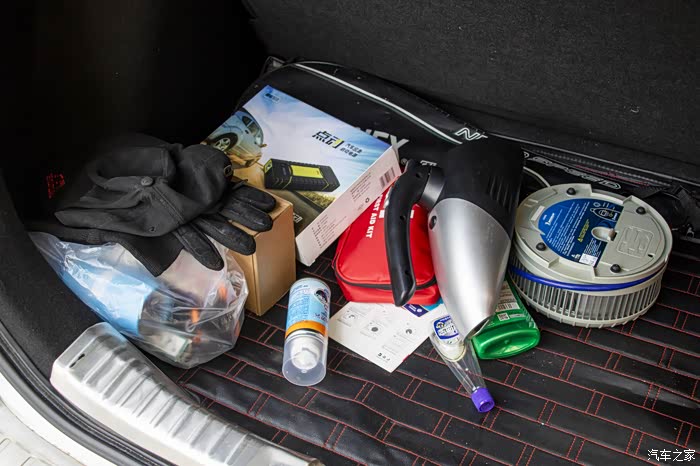 后备箱丢了一些常用的不常用的各种东西。