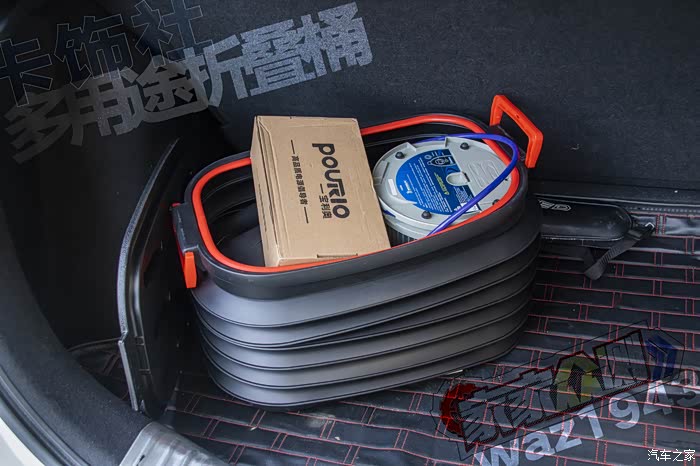 一般后备箱的东西,时多时少,可以改变容积的折叠桶正好可以搞定。