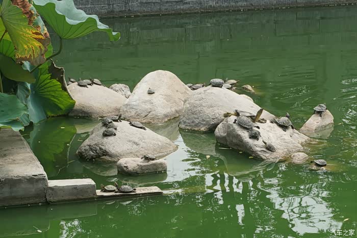 水里的石头上爬满了乌龟,很多是别人放生的吧。感觉龟满为患啊